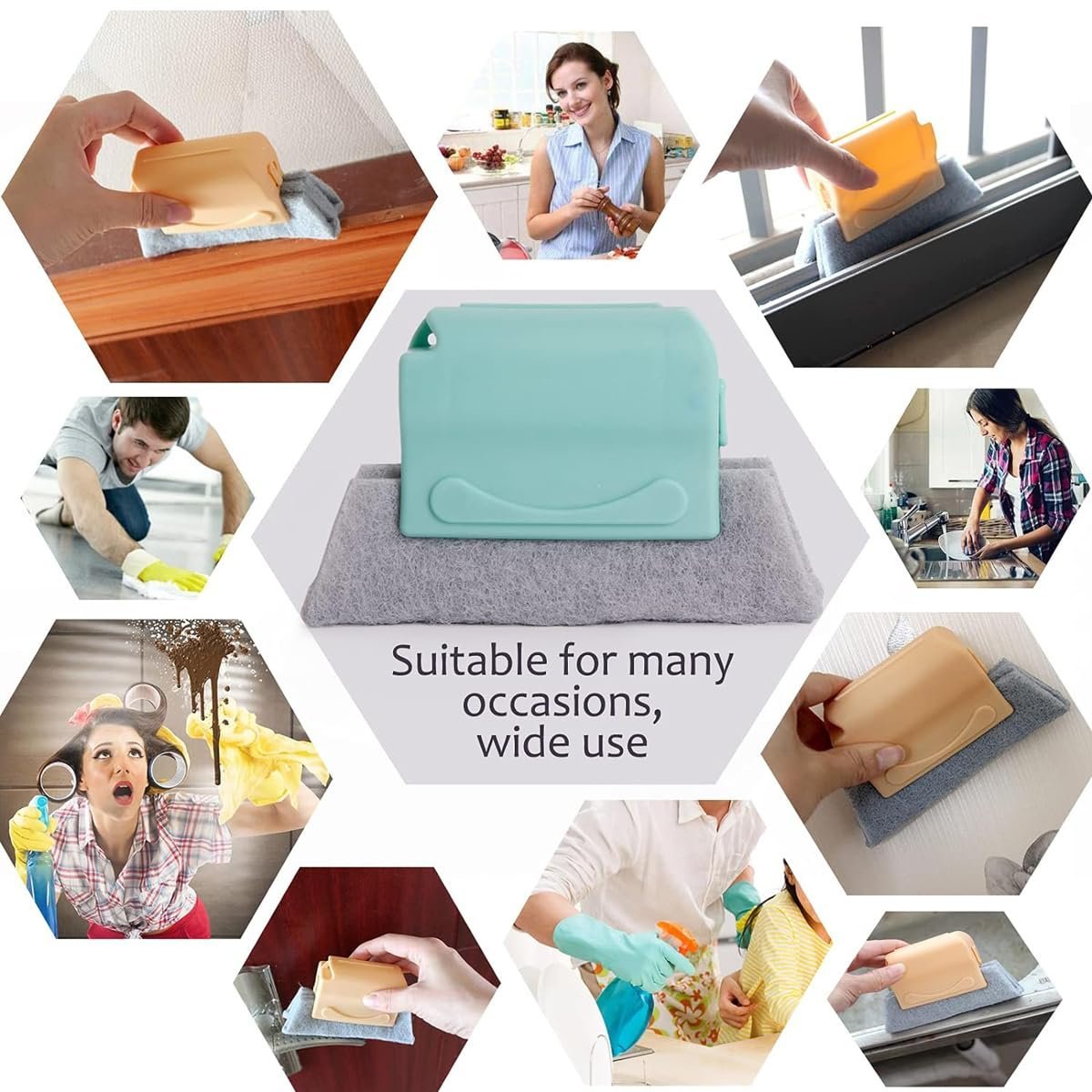 The window cleaning scrubber has a removable pad of mildly abrasive material to help clean. You can wet the pads and even remove them to wash and replace them. Door track cleaning brush is designed to fit into car gap, window, sliding door, shower door tracks to sweep dirt away, suitable for home kitchen, bathroom, living room, laundry room, storage room, and more places, makes cleaning so much easier.